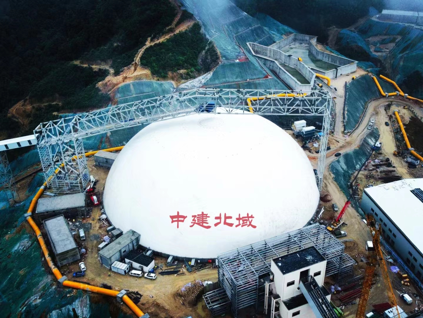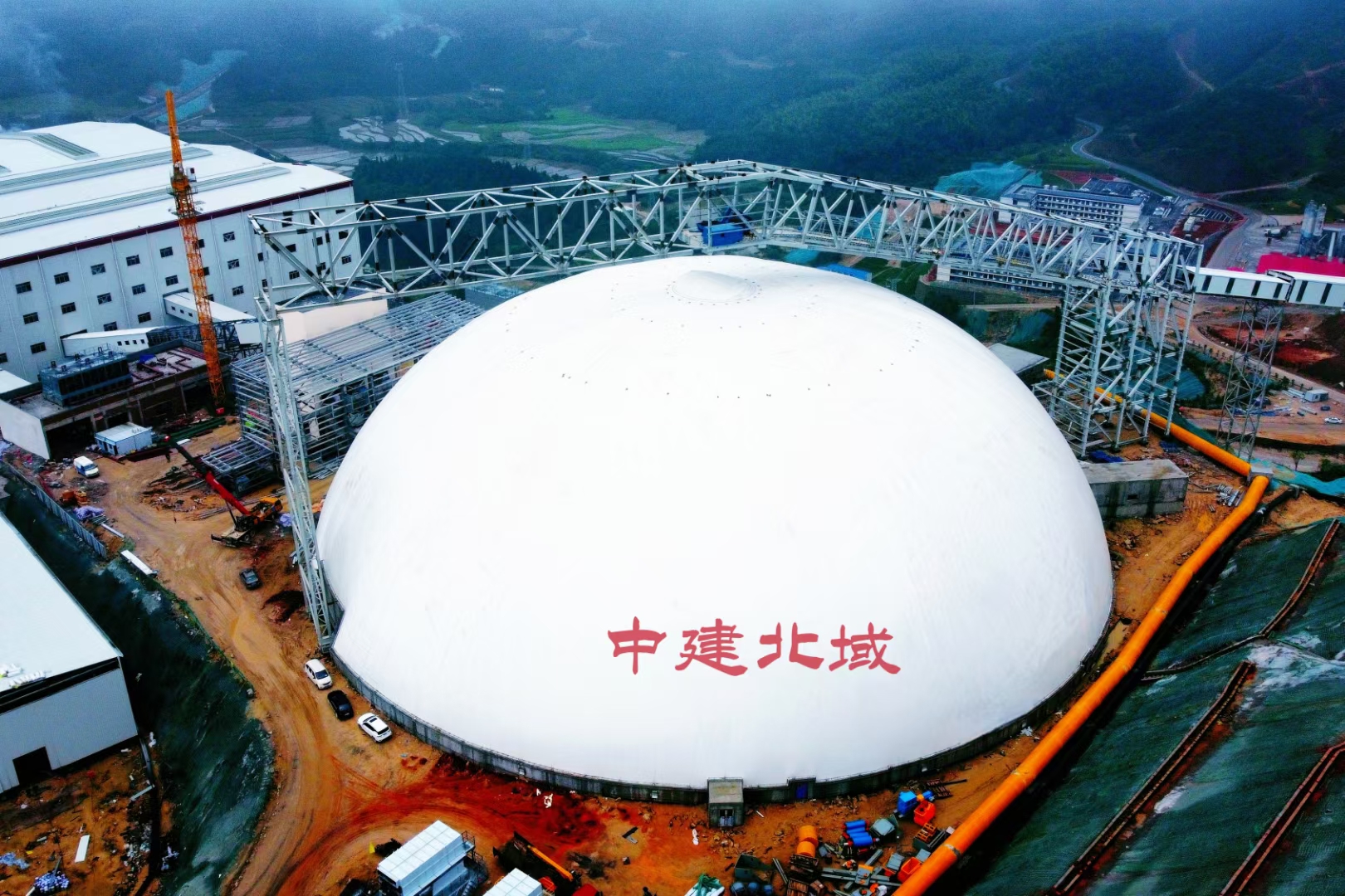 2023年6月,在江西省宜春市內(nèi),一座巨型的“白饅頭”建筑在一天內(nèi)陡然佇立起來。這是由中建北域建設(shè)工程有限公司承建的鋰礦智能氣膜料棚項目,該項目的成功充膜標(biāo)志著國內(nèi)第一座圓形高空皮帶氣膜料棚的正式誕生。全封閉、大空間、智能化、標(biāo)志性的環(huán)保料棚的建成將為企業(yè)提質(zhì)增效與環(huán)境保護(hù)提供更好的條件和拓展更大的發(fā)展空間。