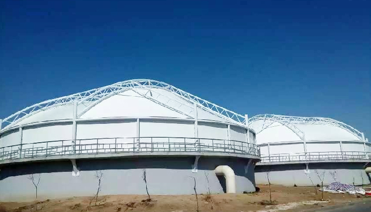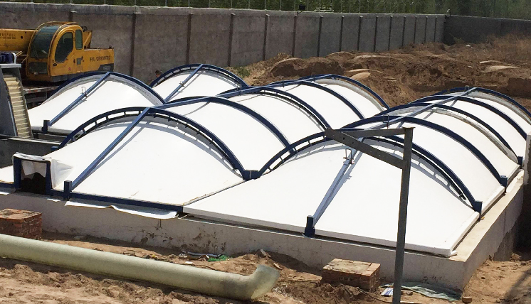 常見的污水池加蓋方式分為三種:陽光板加蓋、玻璃鋼加蓋反吊膜結(jié)構(gòu)加蓋。其中反吊膜結(jié)構(gòu)加蓋目前為普遍采納的加蓋方式。
